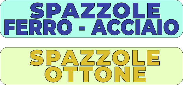 Etichette "Spazzole — ferro-acciaio" (color ferro) e "Spazzole ottone" (color ottone).