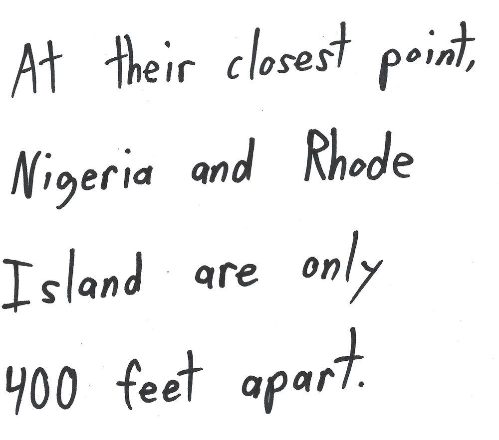 At their closest point, Nigeria and Rhode Island are only 400 feet apart.