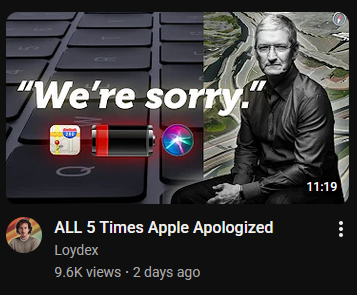 youtube video. "all five times apple apologized"