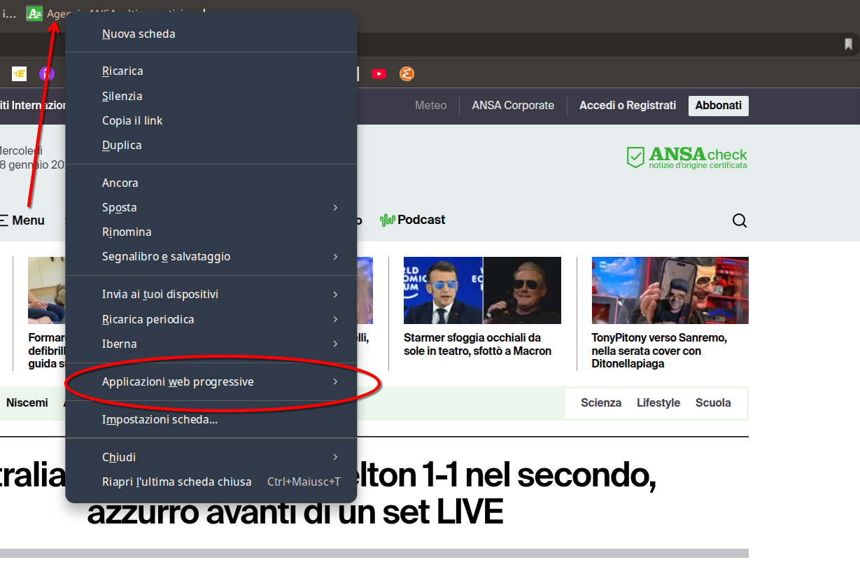 Screenshot annotato che indica dove cliccare per ceare una webapp con Vivaldi Browser