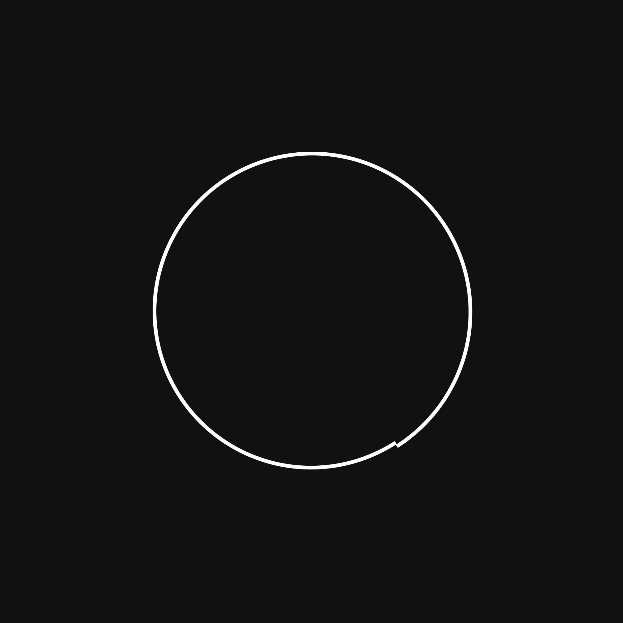 A line that draws a white circle on black background. On the bottom right, it it is not quite closed; instead, one end is offset to the beginning a bit.