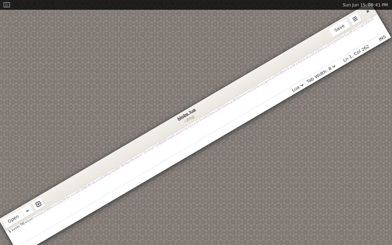 A diagonal window displays a very long line of Lua.