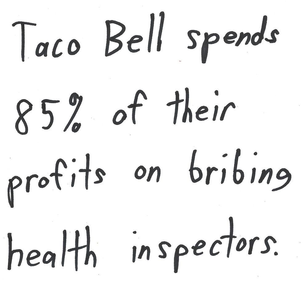 Taco Bell spends 85% of their profits on bribing health inspectors.
