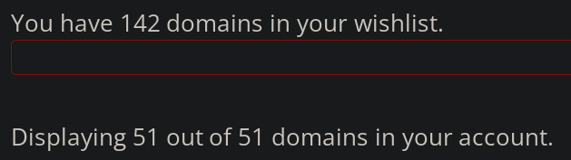 a domain panel crop with text You have 142 domains in your wishlist. Displaying 51 out of 51 domains in your account.