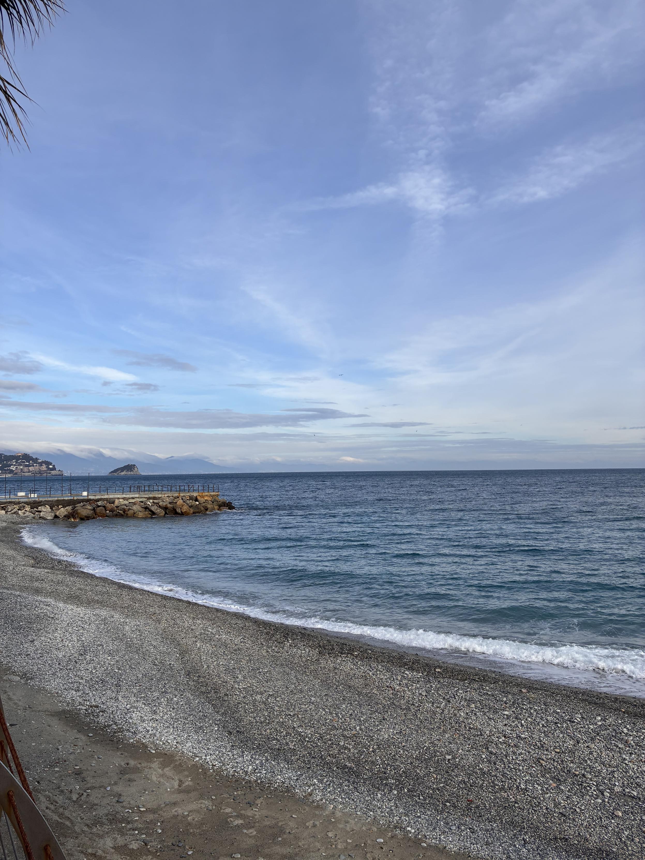 Il mare e lβisola di Bergeggi visti dalla spiaggia di Noli