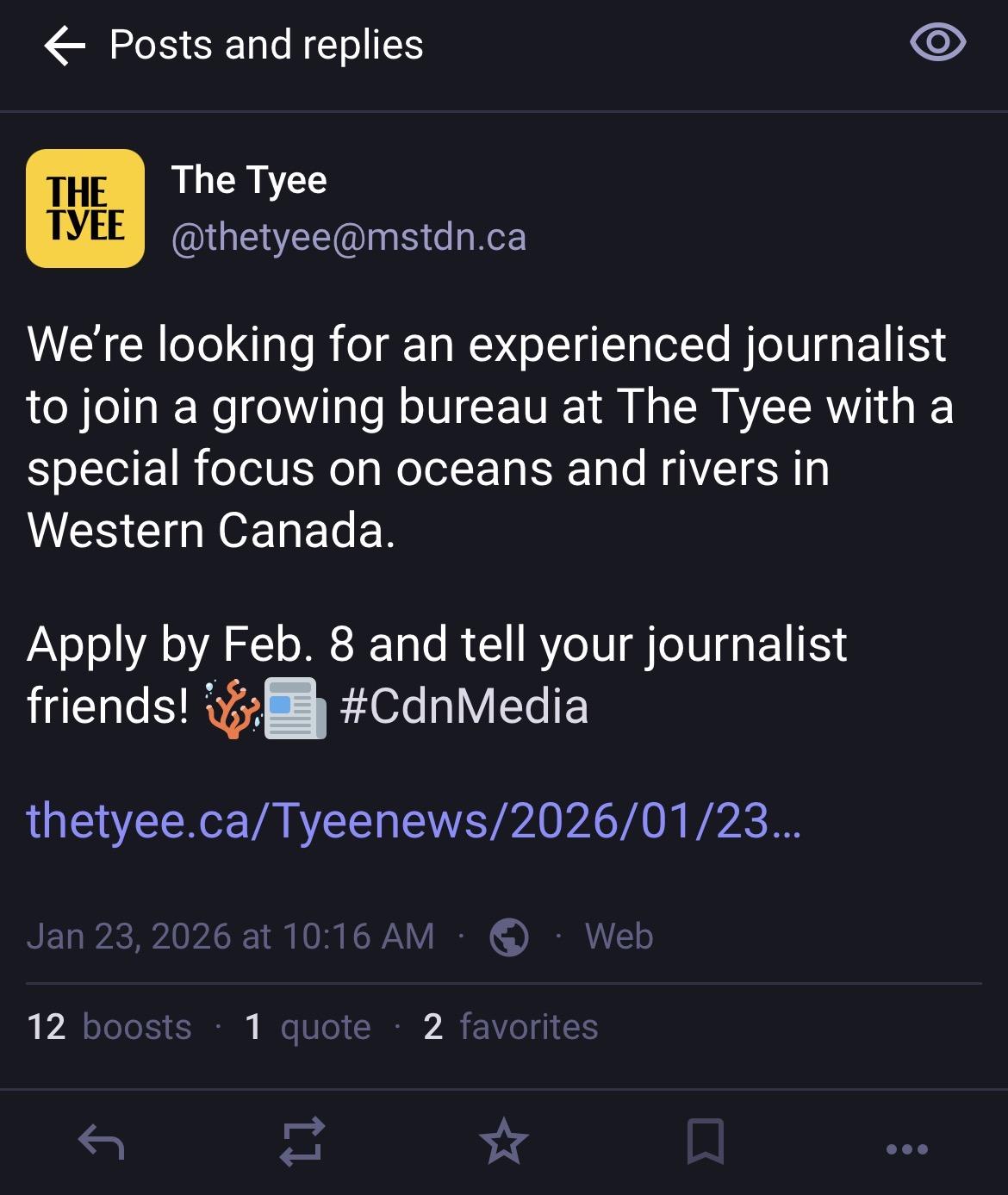 Screenshot of The Tyee News post with a link that has no image preview.