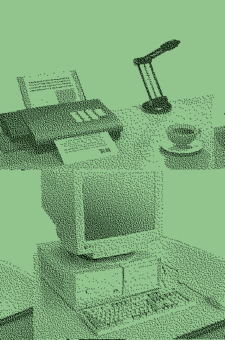 Images of a fax and a vintage-looking PC extracted from the Casio Caleid ROM.