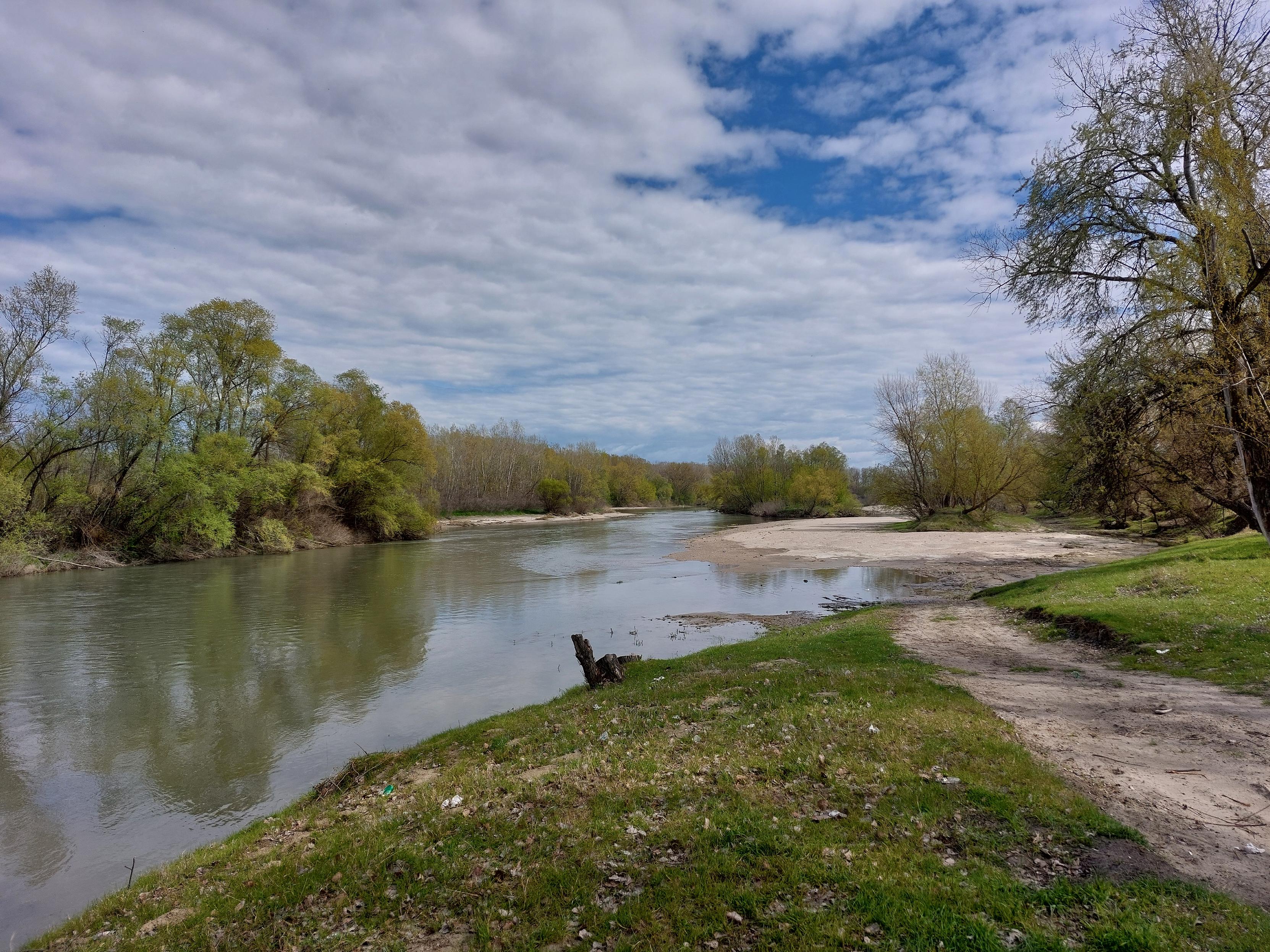 River in the spring, framed by trees with fresh leaves