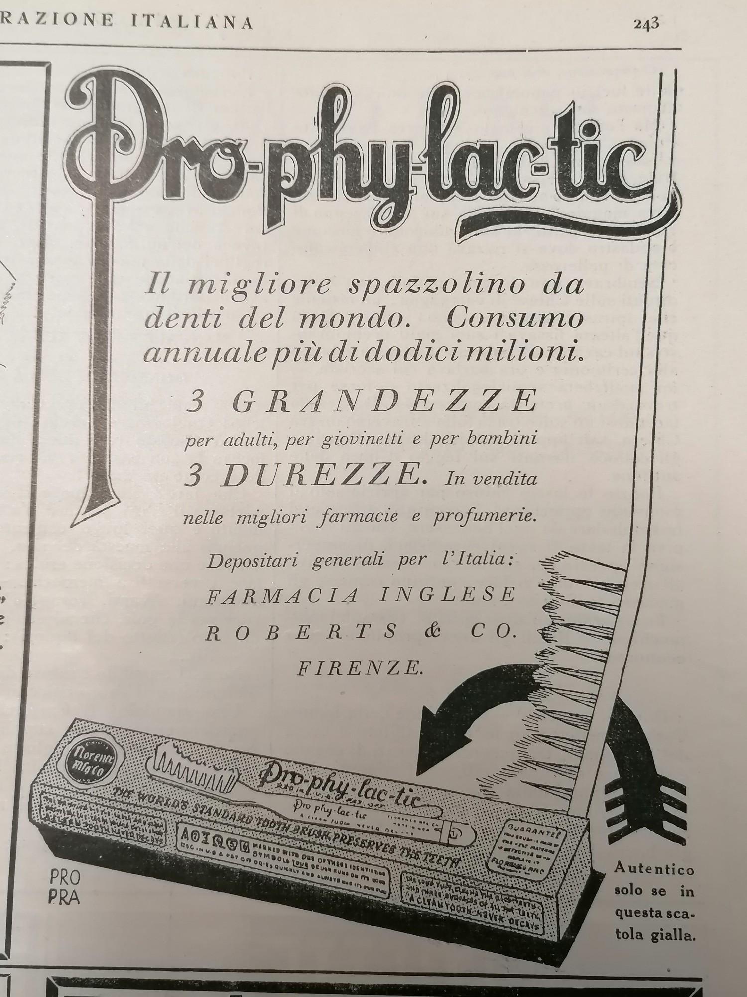 PubblicitΓ , su l'illustrazione italiana del 1924, dello spazzolino da denti Pro-phy-lac-tic