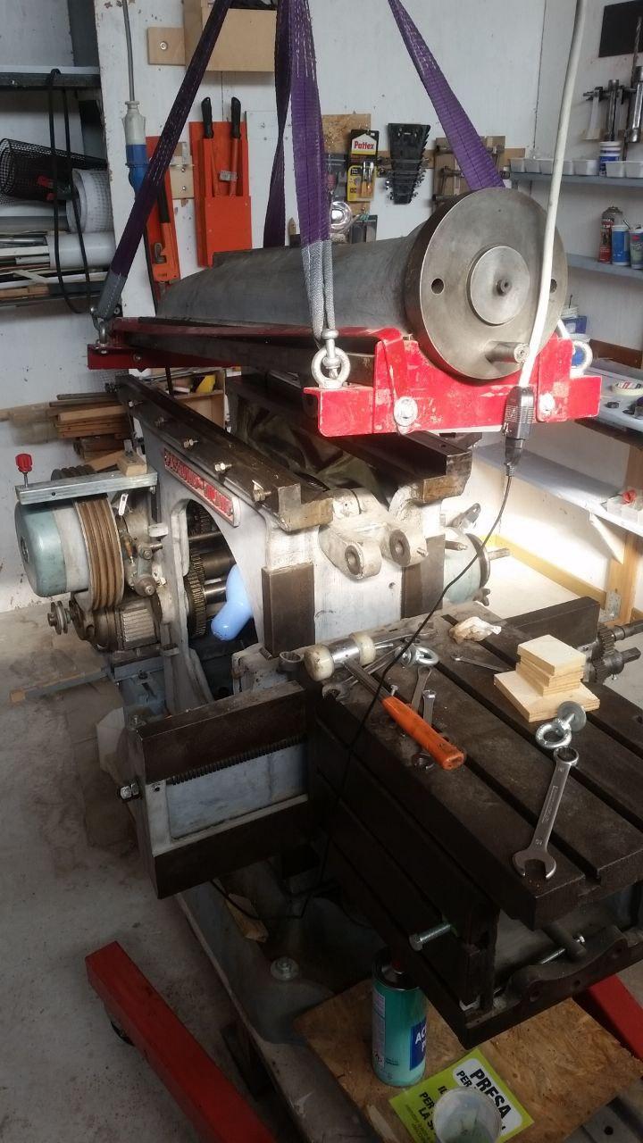 Testa della limatrice sollevata su supporto rosso appeso alla capra.