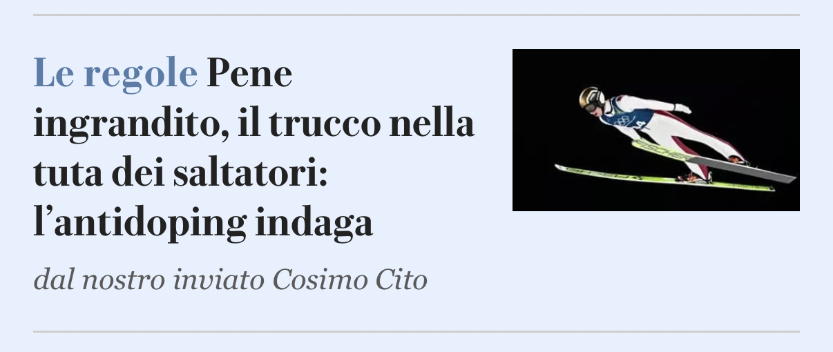 Articolo di Repubblica dal titolo โPene ingrandito, il trucco nella tuta dei saltatori: lโantidoping indagaโ