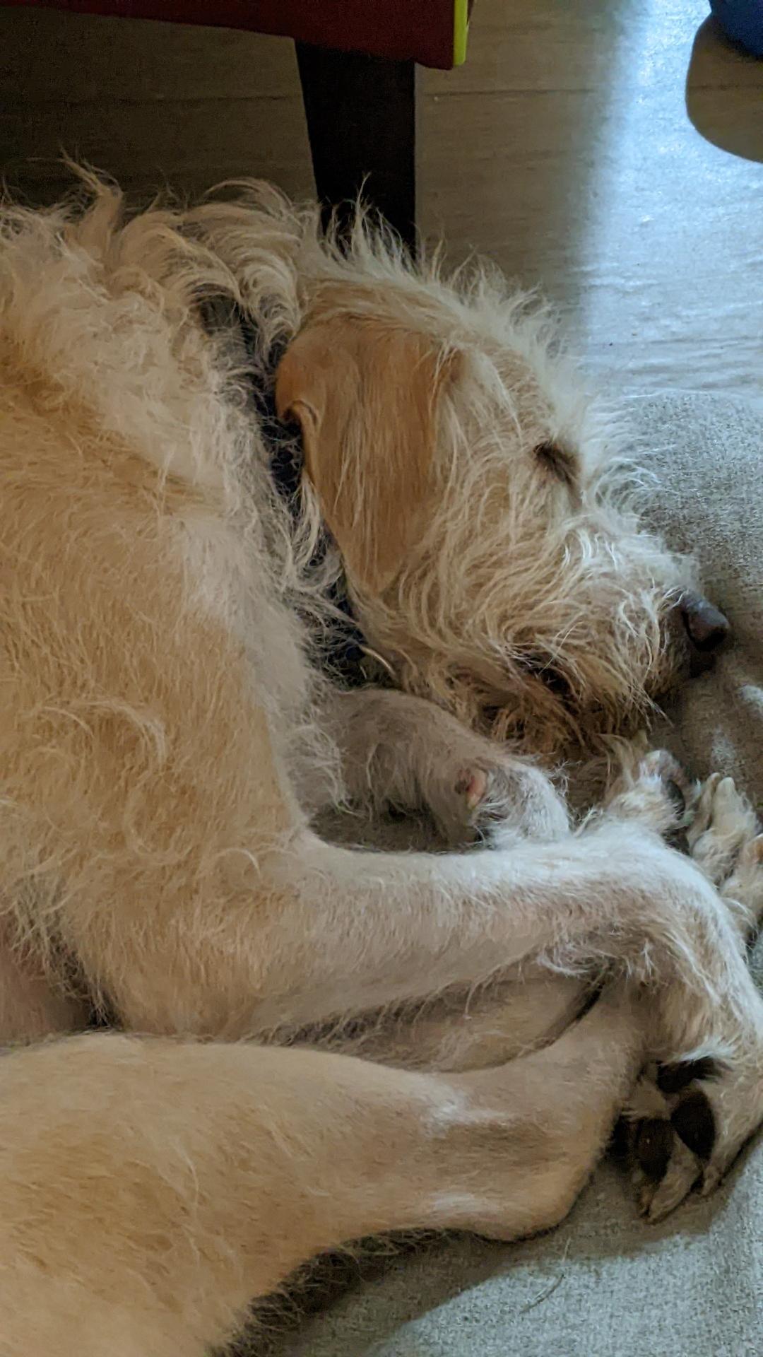the dog Buba curled up and sleeping