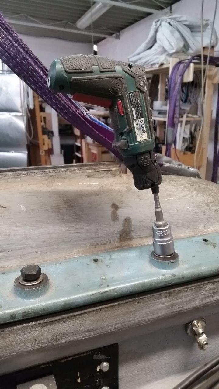 Avvitatore Lidl in equilibrio sopra una vite con testa esagonale da 21 mm.