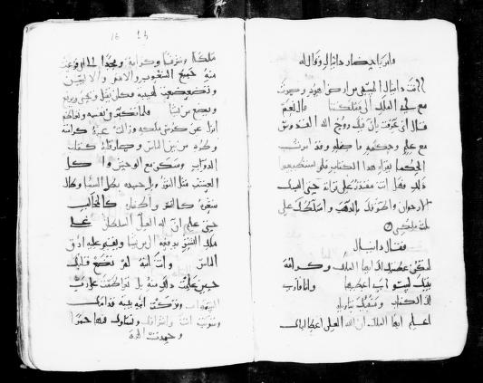 Arabic Manuscripts 597. Book of Daniel and Solomon's Proverbs. The image shows two pages of Arabic text written in traditional calligraphy, appearing to be a biblical manuscript. St. Catherine's Monastery houses one of the world's most important collections of ancient manuscripts, including significant Arabic Christian texts. This manuscript represents the Arabic translation tradition of biblical books, important for understanding how scripture was transmitted and read in Arabic-speaking Christian communities. Part of Manuscripts in St. Catherine's Monastery, Mount Sinai: Microfilm 5014: Arabic (312) Manuscripts in St. Catherine's Monastery, Mount Sinai (1,691) https://www.loc.gov/resource/amedmonastery.00279390684-ms/?sp=19&st=image