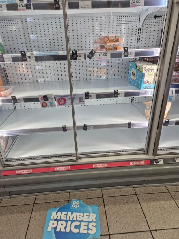 Co-op stores in Sheffield, Badenoch, Dunfermline and many other places are apparently running out of produce - it's not possible to keep up with the local media reports but they're basically bored reporters get sent out to photograph half empty fridges.