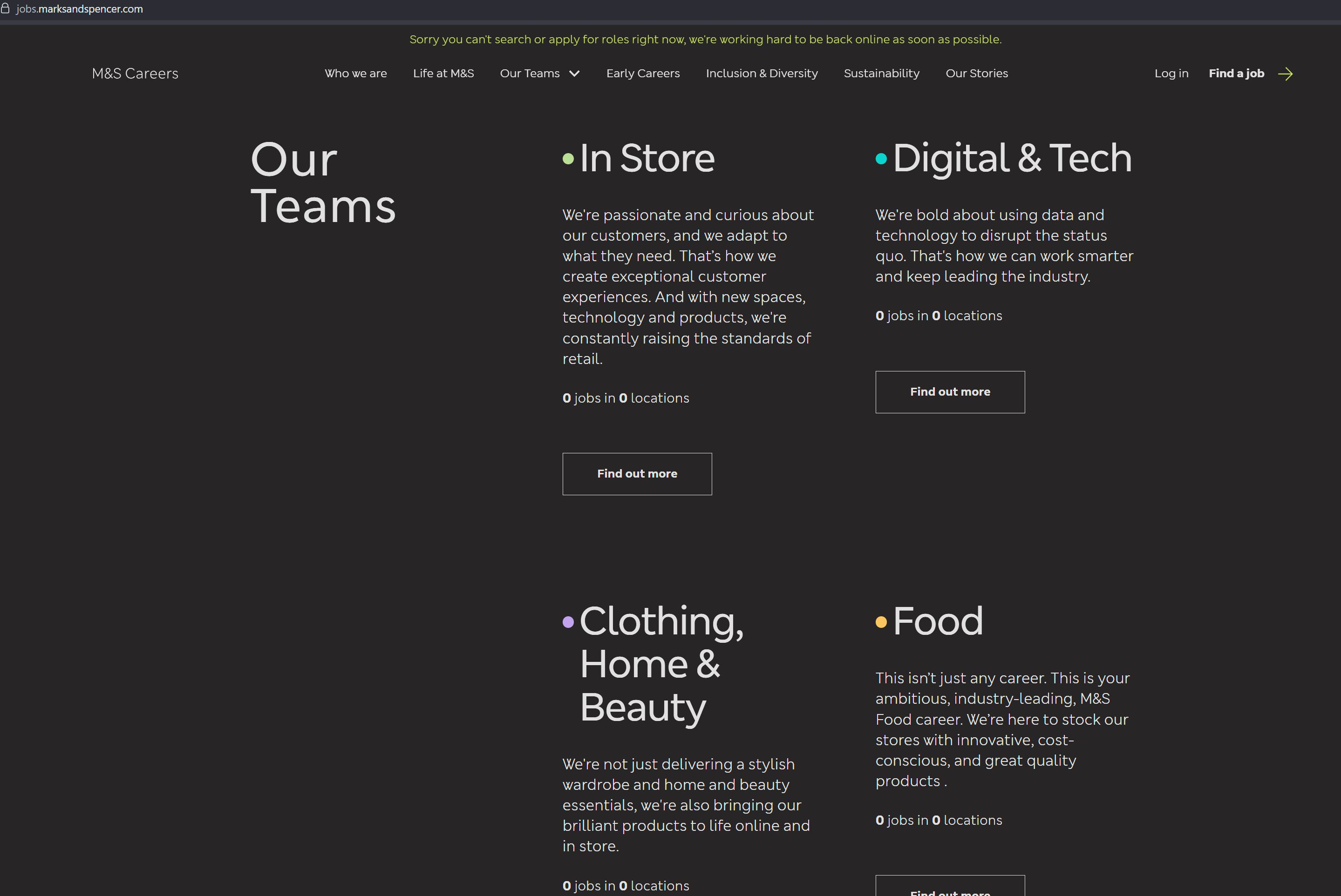 After almost 3 months, Marks and Spencer recruitment system came back online just now. First 4 jobs posted.