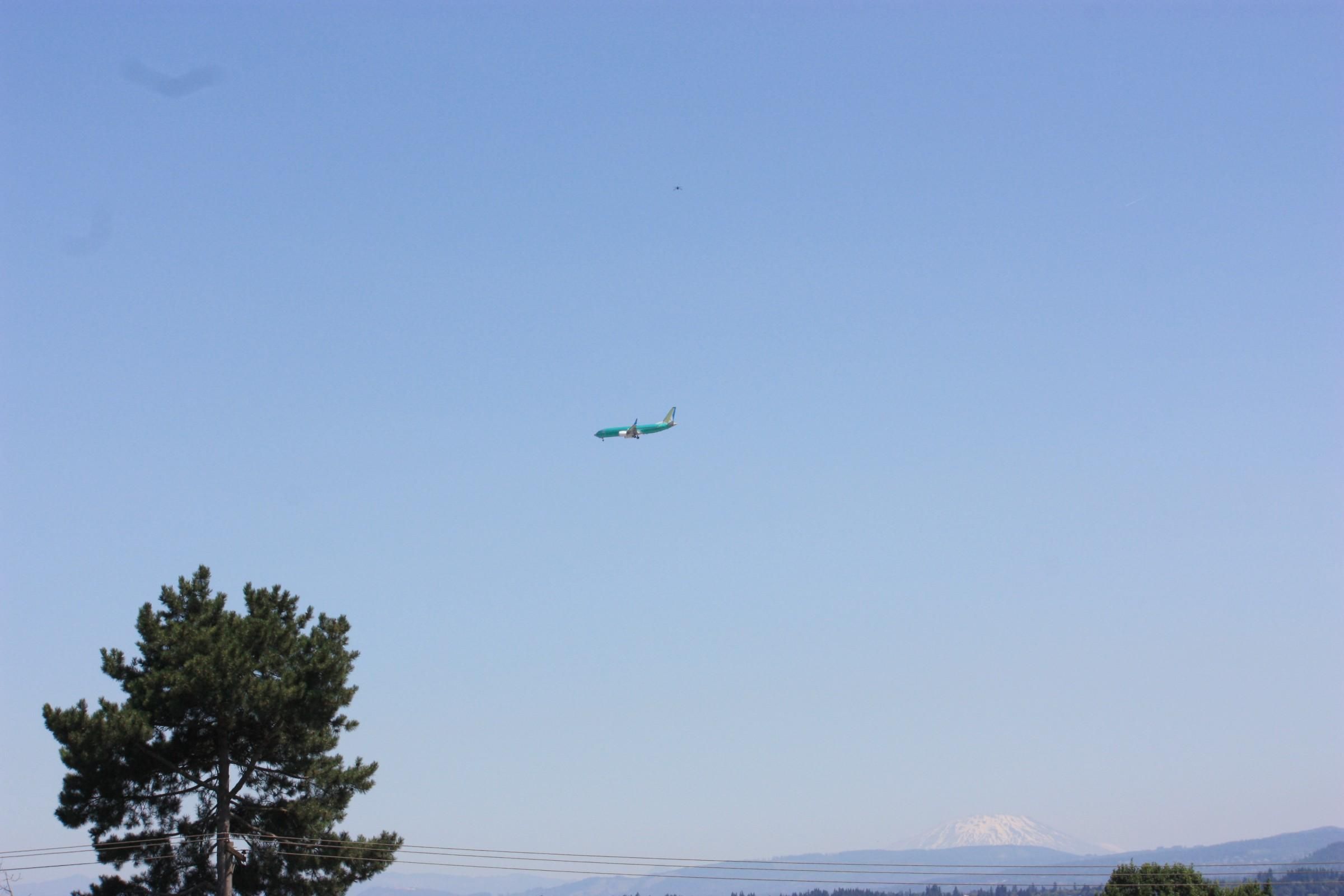 From home in Portland I saw a green unpainted Boeing 737 MAX8 on final approach to Portland Int'l #KPDX, coming from the 737 factory in Renton #KRNT, Washington. The pre-painted rudder and winglets appear to be from AJet of Turkey. This is usually the first flight of the aircraft by Boeing test pilots. It's going to Boeing's Portland paint hangar which handles overflow when the Seattle-area paint hangars are booked. #aviation #avgeek #PNW