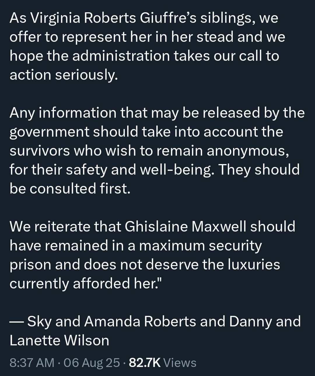 Sex-trafficking rape survivor's family published a message today about convicted felon's meeting with the convicted child sex-trafficker: