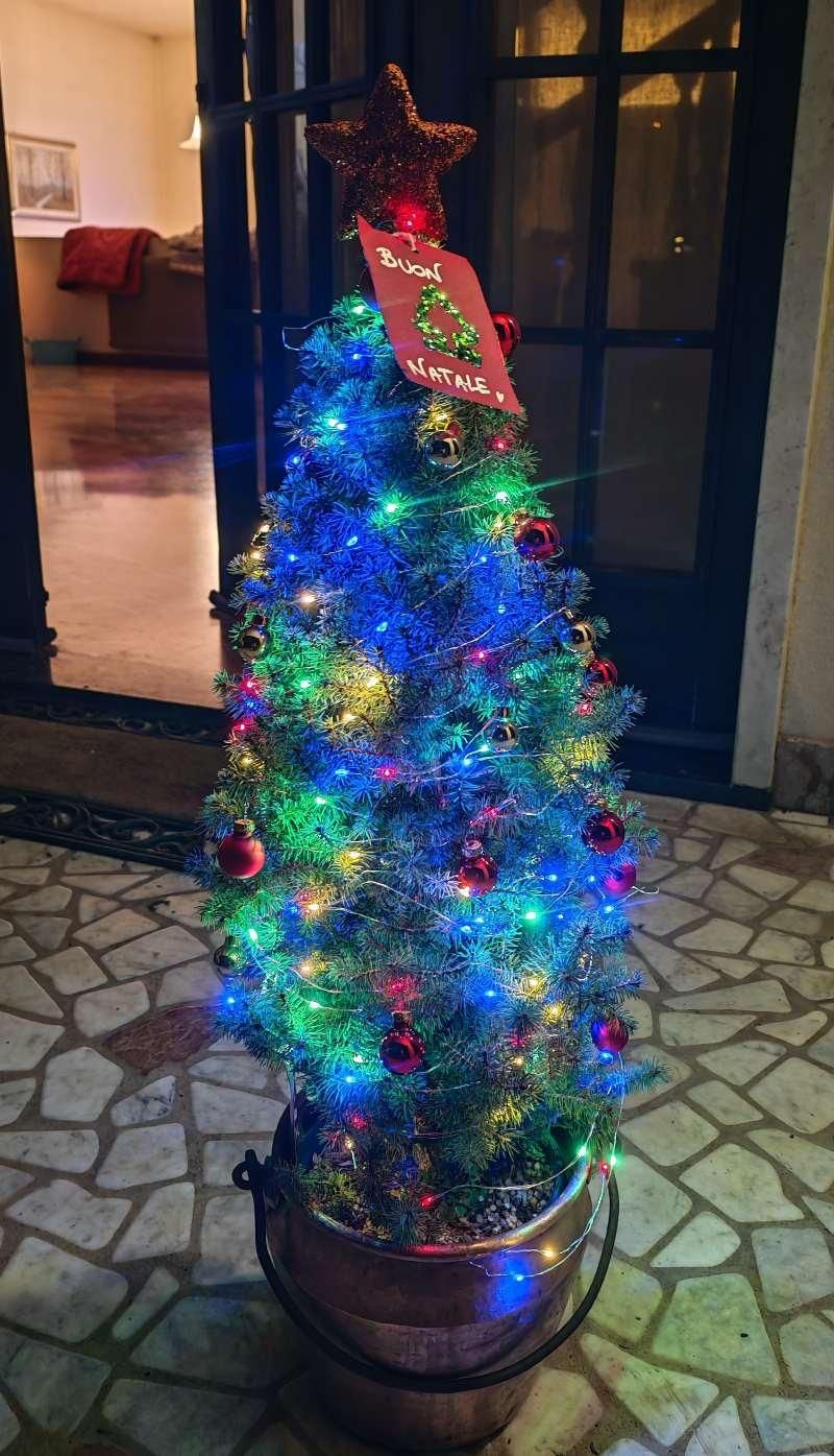 Mini albero di Natale a basso budget ma alto divertimento featuring pentola di rame del nonno (che non usava per cucinare, mi dicono, ma per scaldare la colla da falegname)