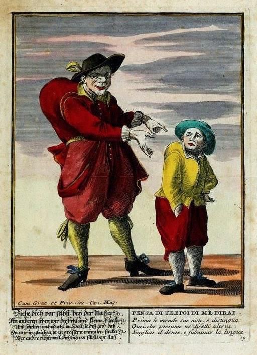 Pages from a wonderful Italian book of proverbs made by the engraver and painter Giuseppe Maria Mitelli (1634–1718). More here: http://buff.ly/2uKnDmK