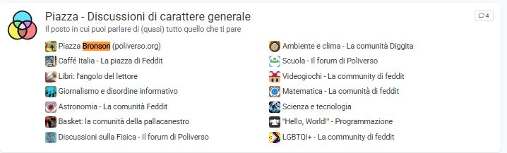 #Citiverse inserisce la mia @piazzabronson@poliverso.org nella categoria "Sport, hobby e divertimento".