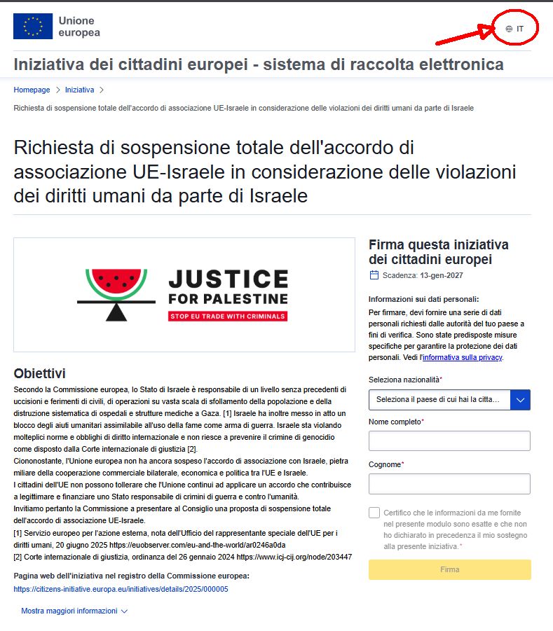 Thread con istruzioni passo-passo per sostenere con firma certificata l'iniziativa civica europea per sospendere i rapporti commerciali con uno stato indagato per genocidio, e guidato da un capo di governo ricercato per crimini di guerra e crimini contro l'umanitΓ .